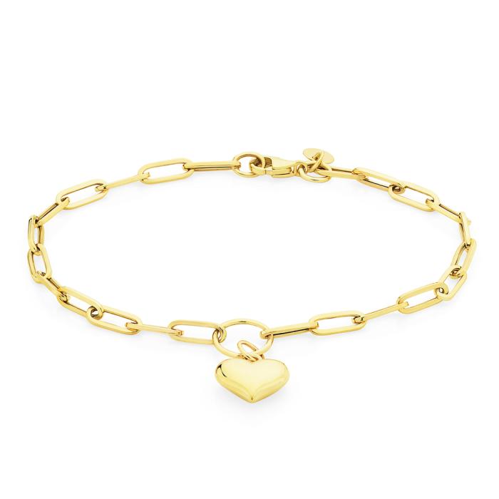 9ct Gold 18.5cm Hollow Paperclip with Heart Charm Bracelet2177069