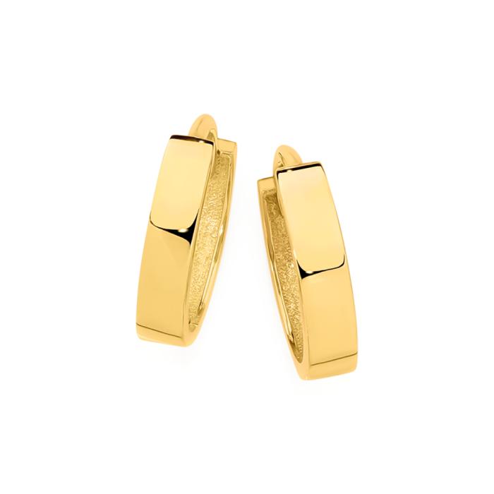 9ct Gold 10mm Polished Huggie Earrings. Approximate Dimensions - 2.5mm Width x 10mm Inner Diameter.