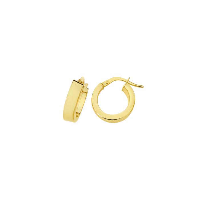 9ct Gold 10mm Rectangle Tube Hoop Earrings