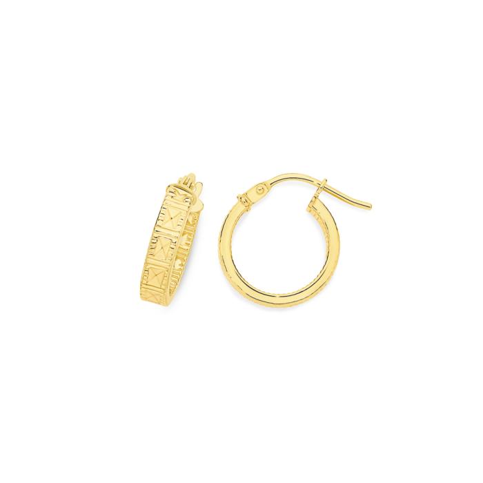 9ct Gold 10mm Square Tube Pattern & Lined Hoop Earrings