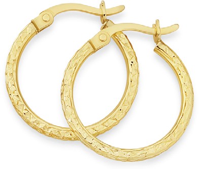 9ct Gold 15mm Diamond-cut Hoop Earrings