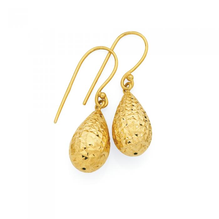 A fresh take on drop earrings, these 9ct yellow gold earrings feature an oval teardrop design and is finished with diamond cut facets for a modern, extra-shiny look.