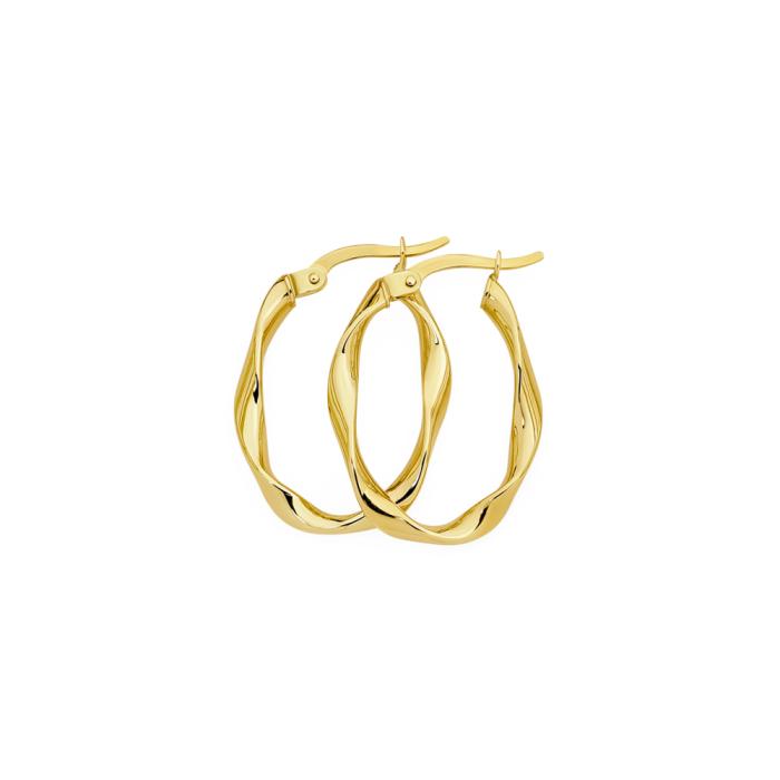 9ct Gold Oval Ribbon Twist Hoop Earrings