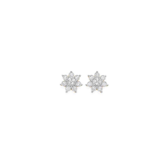 9ct Two Tone Gold Diamond Flower Cluster Stud Earrings