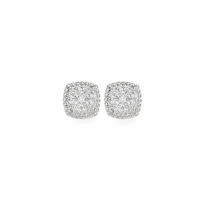9ct White Gold Diamond Cushion Shape Cluster Stud Earrings. Size = Approx. 6mm x 6mm.