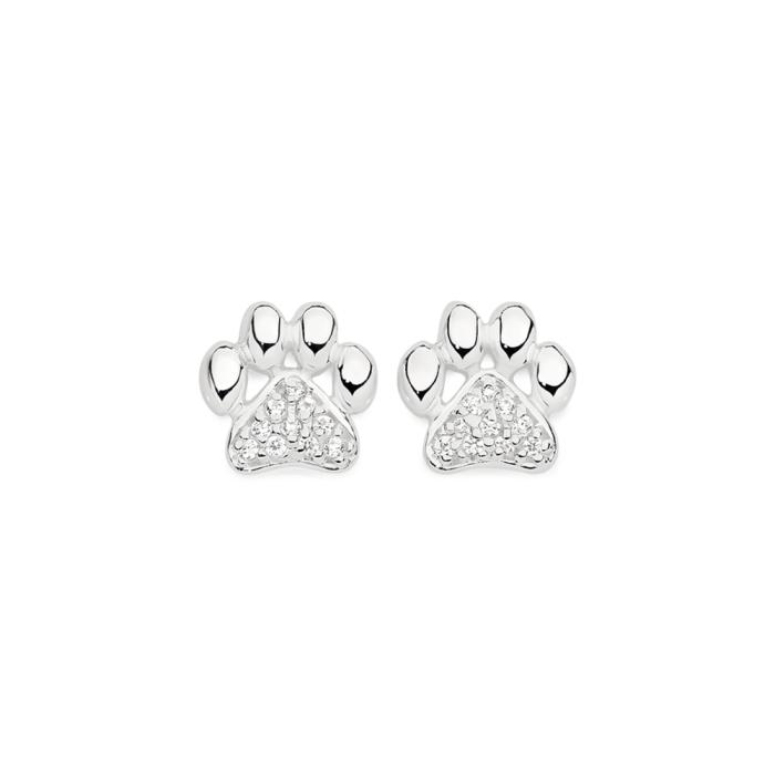 Sterling Silver Cubic Zirconia Pave Paw Print Earrings