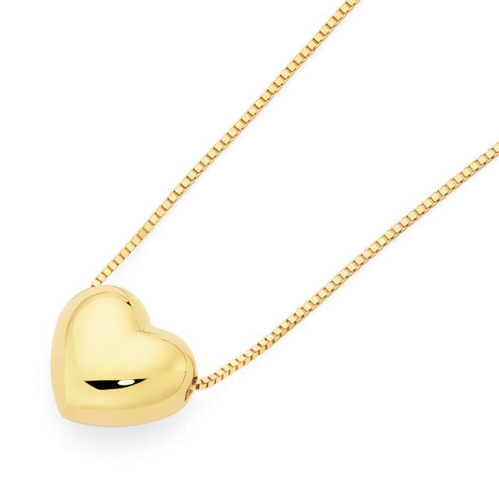 Italian Made 9ct Gold 45cm Puff Heart Necklet2547013
