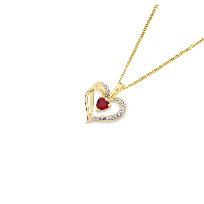 9ct Gold Created Ruby & Diamond Heart Pendant