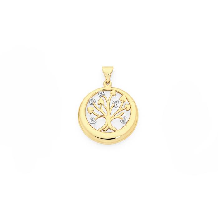 9ct Gold Diamond Tree of Life Puff Pendant with Heart Leaves. Size = Approx. 25mm x 20mm Including Bale.