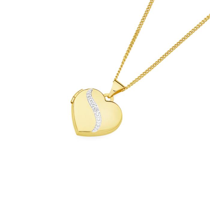 9ct Gold Two Tone 15mm Diamond-Set Swirl Heart Locket2559008