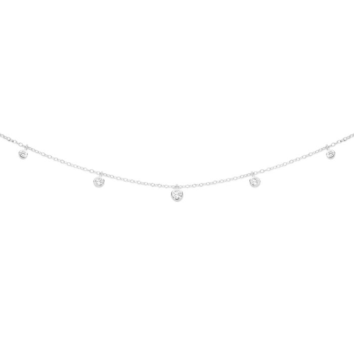 Sterling Silver CZ 40.5+5cm Bezel Fringe Necklet1717009