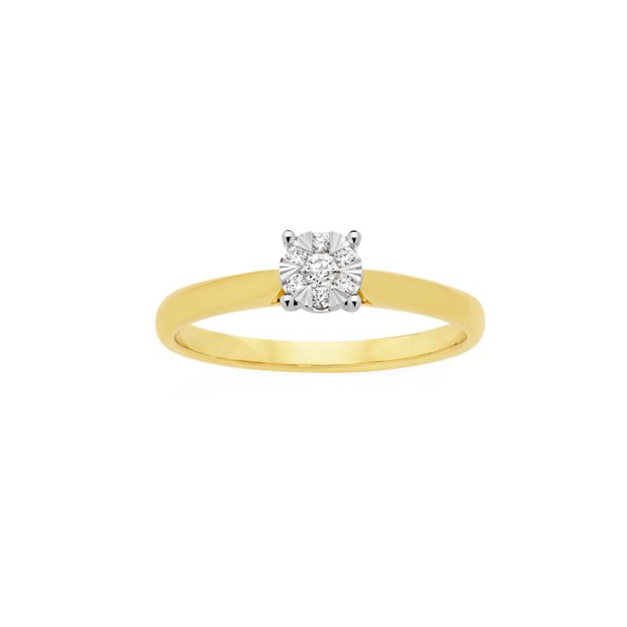 9ct Gold Diamond Round Brilliant Cut Cluster Ring Total Diamond Weight=.10ct