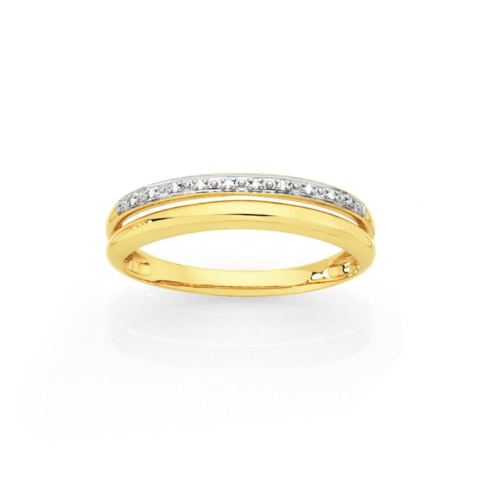 9ct Gold Diamond Pave Set/Polish Gold Two Row Split Dress Band8637193