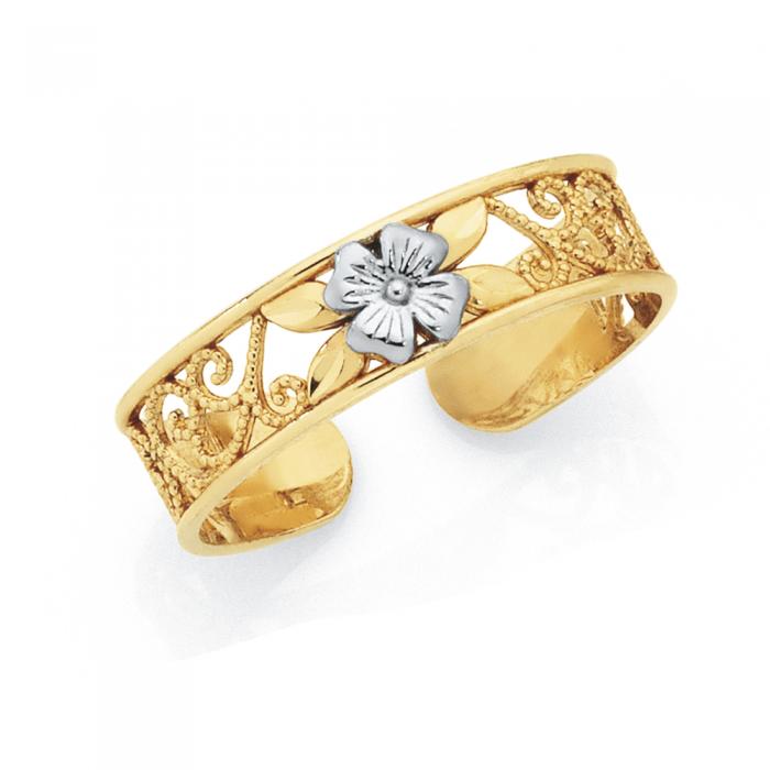 9ct Gold Two Tone Filigree Flower Centre Toe Ring2737227