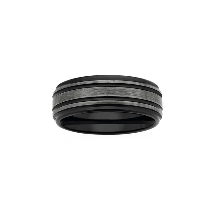 Tungsten Carbide Matt Lines on Black Gents Ring