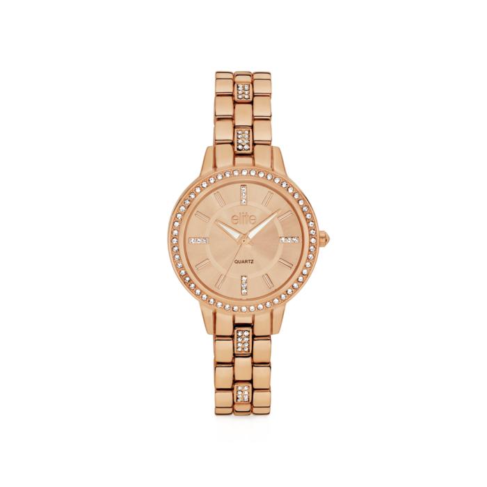 Elite ladies, rose tone, rose sunray dial, crystal set watch 5089232