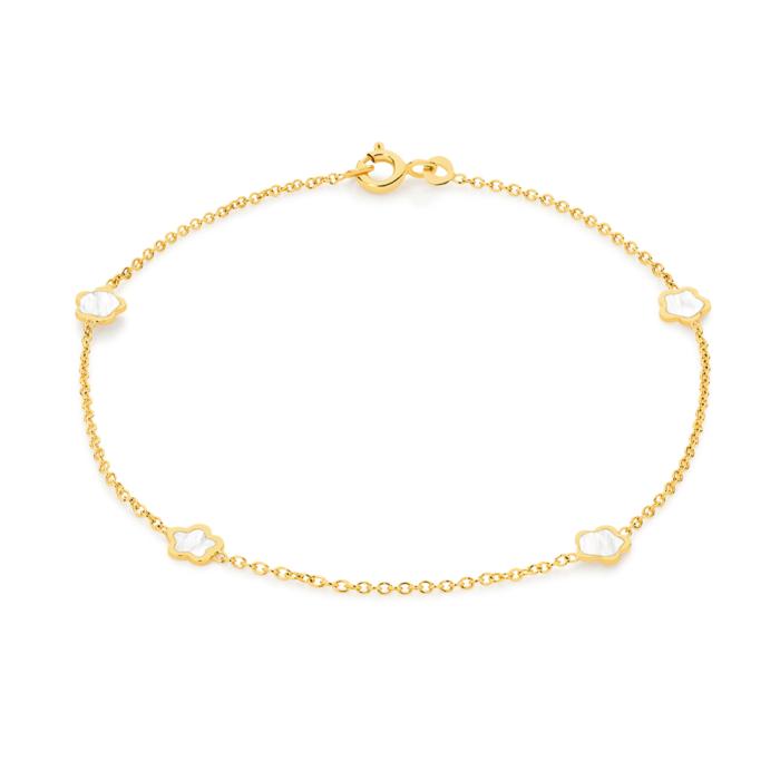 9ct Gold 19cm Enamel Flowers Solid Trace Bracelet