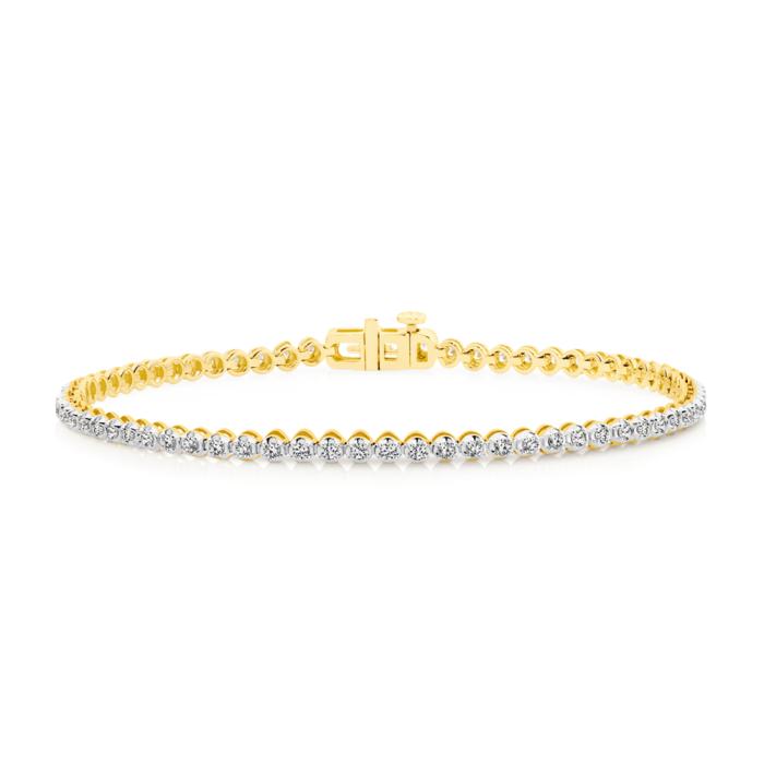 9ct Gold Diamond Round Brilliant Cut Claw Set Fine Tennis Bracelet Total Diamond Weight = 1.00ct. Length = Approx. 18cm.