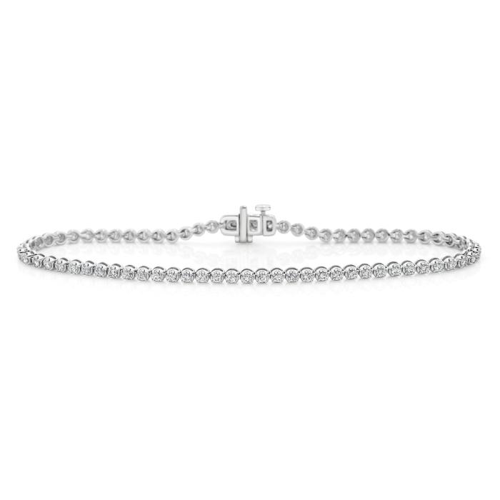 9ct White Gold Diamond Round Brilliant Cut Claw Set Fine Tennis Bracelet Total Diamond Weight = 1.00ct. Length = Approx. 18cm.