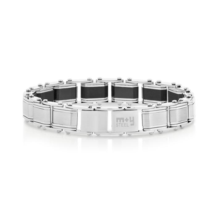 M+Y Stainless Steel Black Centre/Silver Line Edge Gents Bracelet