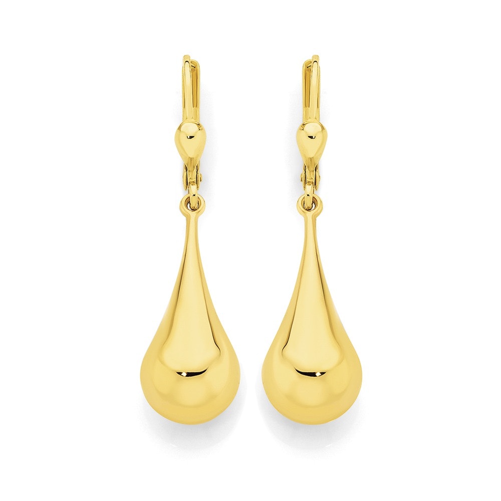 European Made 9ct Gold Long Bomber Lever Back Drop Earrings - Approximate Dimensions 10x38mm including lever backs