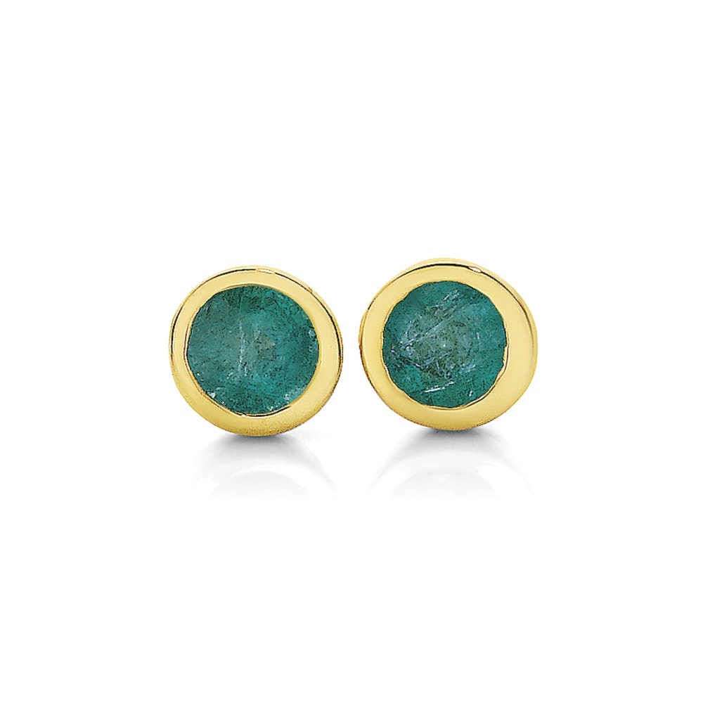 9ct Gold Natural Emerald Round Brilliant Cut Bezel Set Stud Earrings. Natural Emerald Stone Size = 3mm