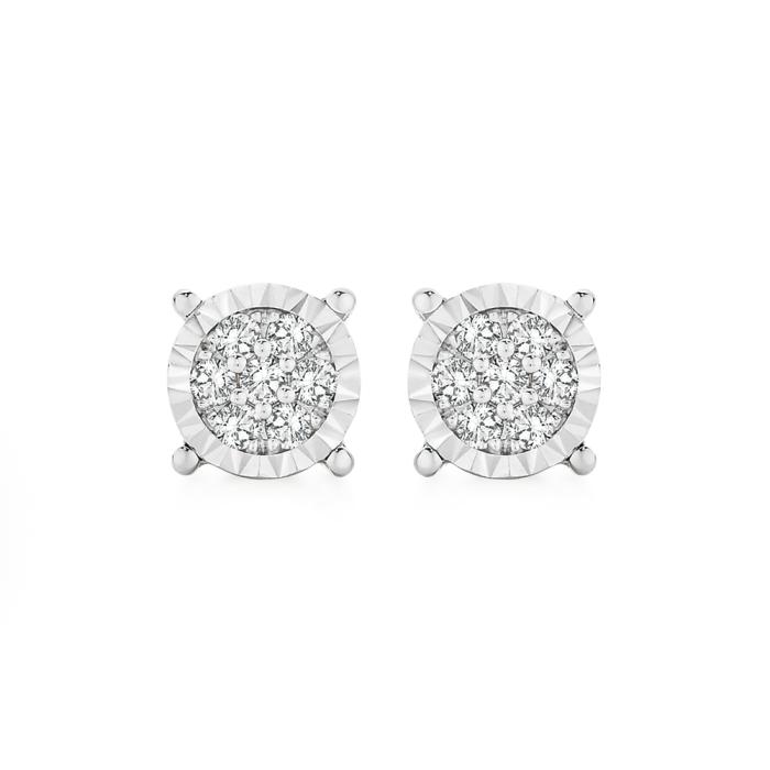 9ct Two Tone Gold Diamond Round Brilliant Cut Miracle Set Frame Cluster Stud Earrings. Size = Approx. 5mm in Diameter.