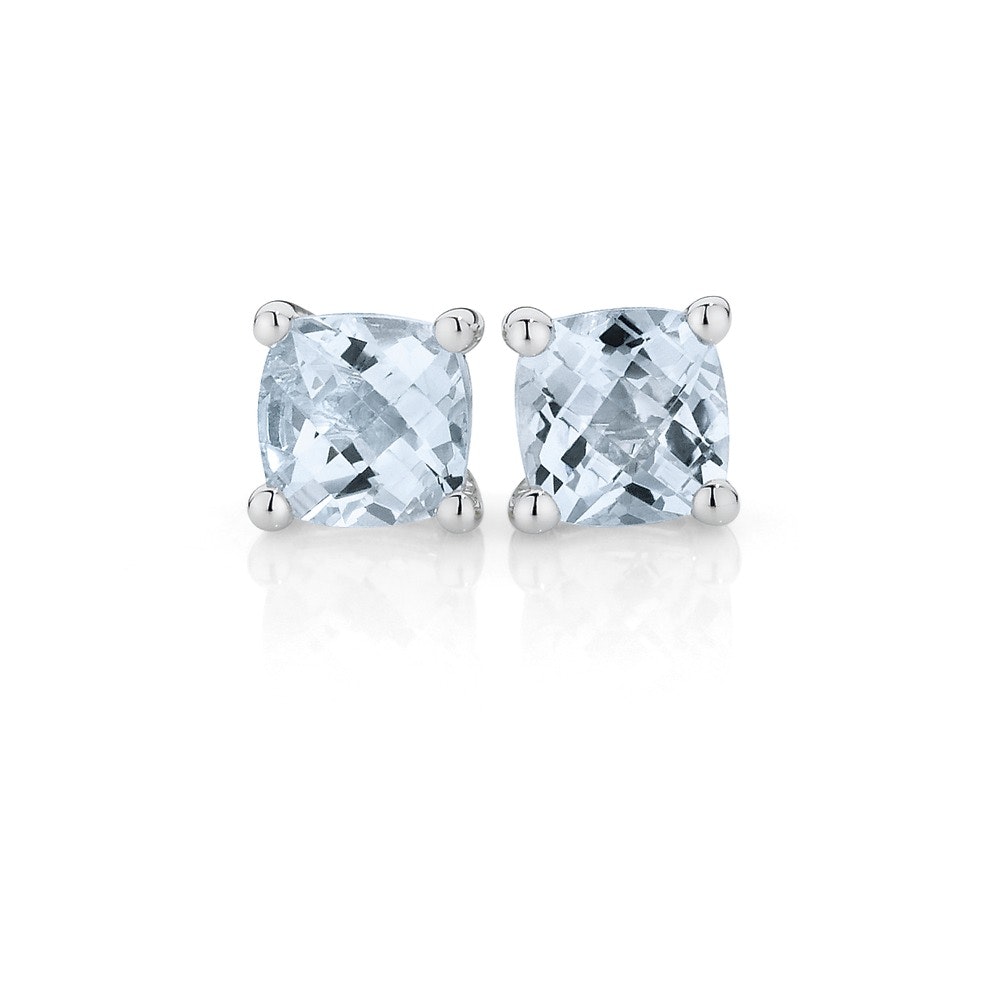 9ct White Gold Aquamarine Cushion Cut 4 Claw Stud Earrings. Aquamarine Stone Size = 5mm