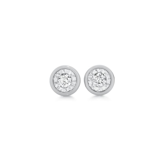 9ct White Gold Diamond Miracle Bezel Set Stud Earrings. Size = Approx. 4mm in Diameter.