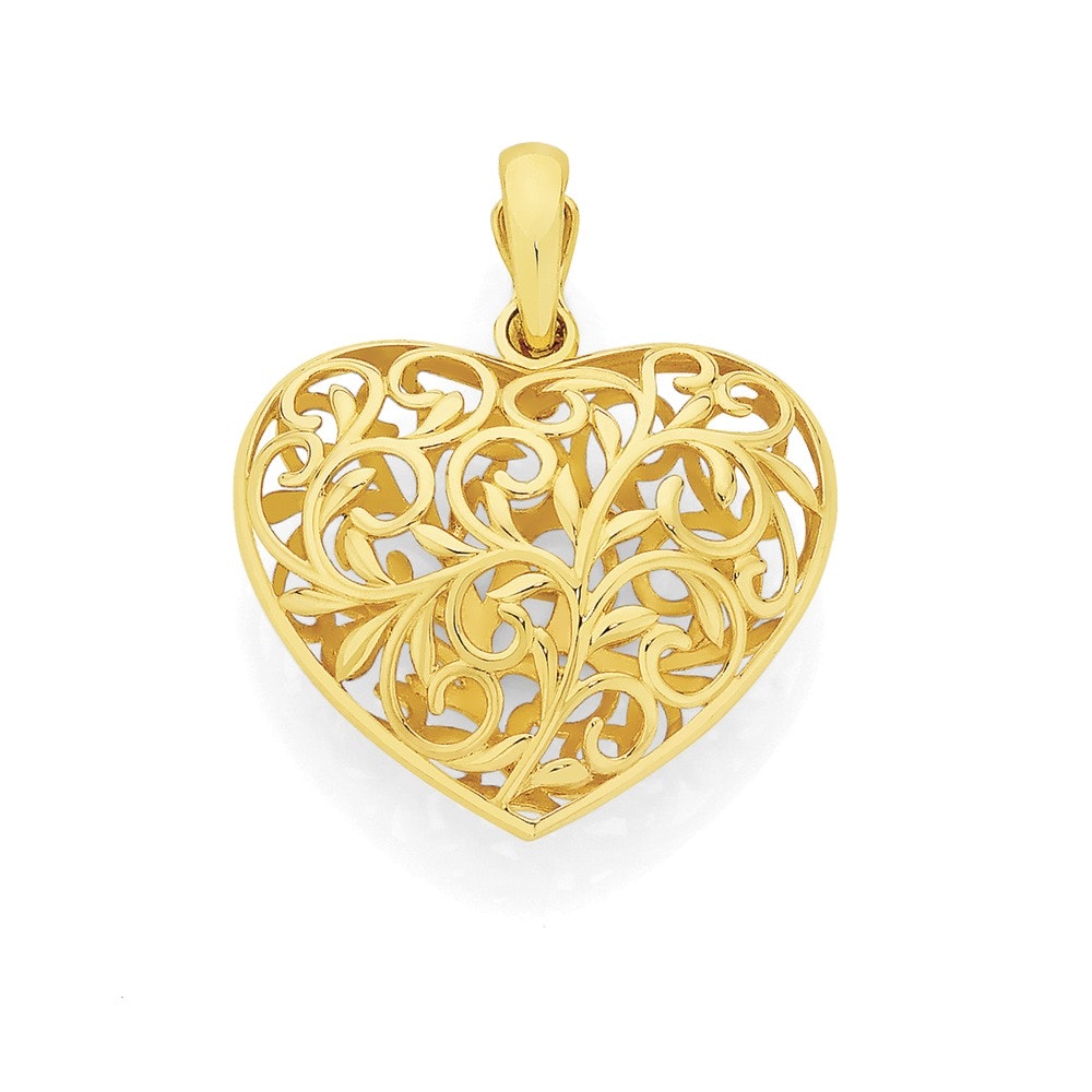 9ct Gold Puff Filigree Heart Enhancer Pendant