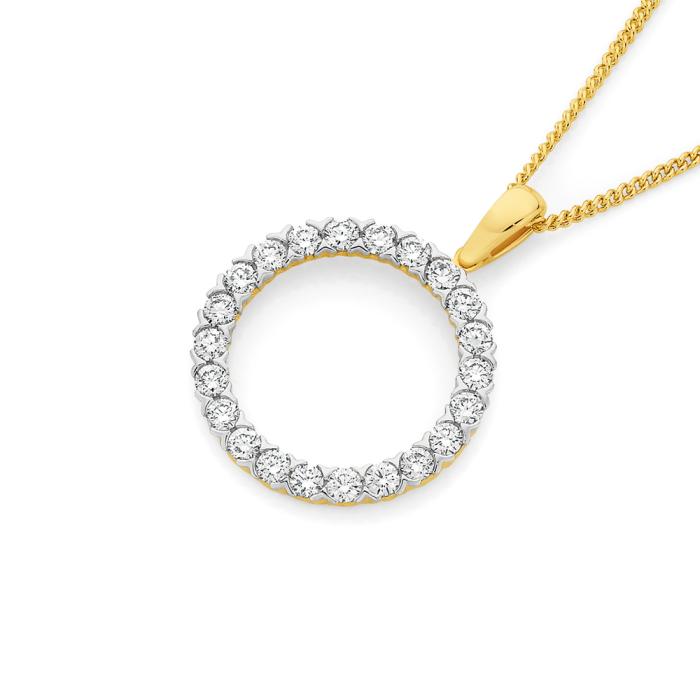 Alora 10ct Gold Lab Grown Diamond Round Brilliant Cut Circle Pendant Total Weight = 1.00ct. Size = Approx. 26mm x 20mm Including Bale.