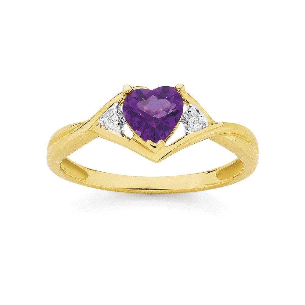 9ct Gold Amethyst & Diamond Heart Cut Ring. Amethyst Stone Size = 6mm 7405087