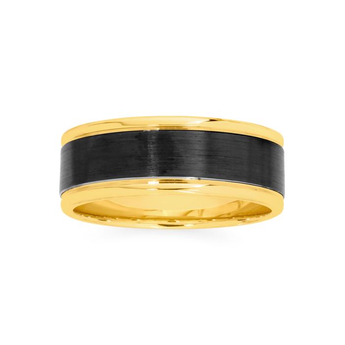 9ct Gold & Black Zirconium 8mm Wide Gents Ring - Available in Size W