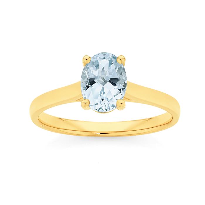 9ct Gold Aquamarine Oval Cut Claw Set Ring Aquamarine = 8x6mm
