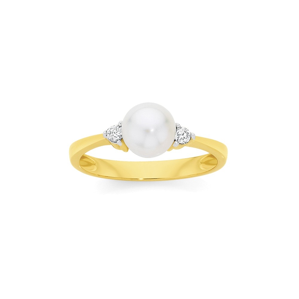 9ct Gold Cultured Freshwater Pearl & Diamond Ring
