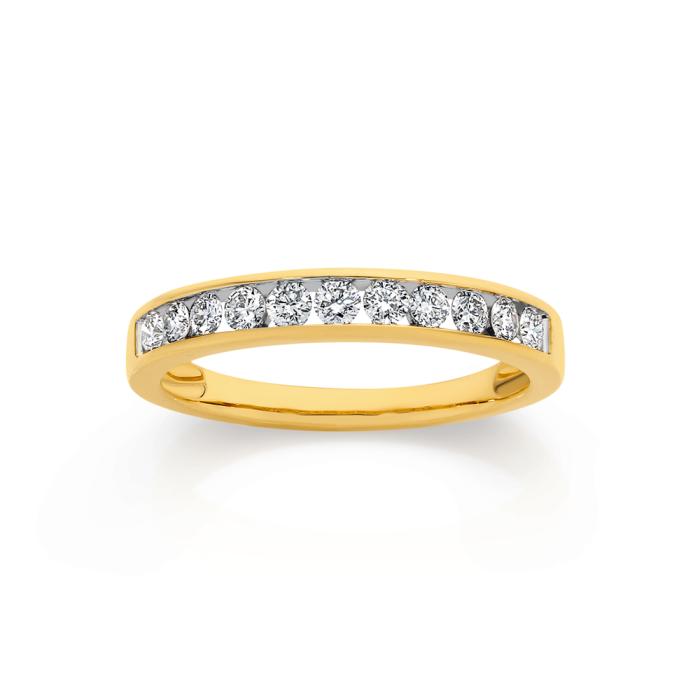 9ct Gold Diamond Round Brilliant Cut Channel Set Anniversary Band Total Diamond Weight =.50ct