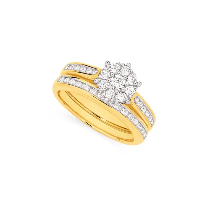 9ct Gold Diamond Cluster Bridal Set
