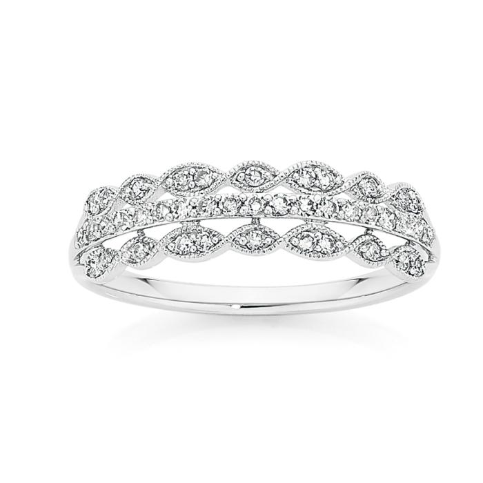 9ct White Gold Diamond Round Brilliant Cut & Marquise Shape Three Row Milgrain Ring Total Diamond Weight=.25ct