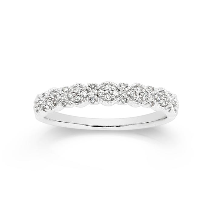 9ct White Gold Round Brilliant Cut Milgrain Vintage Style Band Total Diamond Weight=.15ct