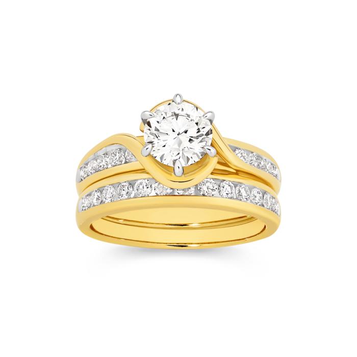 Alora 14ct Gold Lab Grown Diamond Bridal Set Round Brilliant Cut Featuring a Certified 1.10ct Solitaire Centre Stone with Channel Set Shoulders TW = 1.75ct