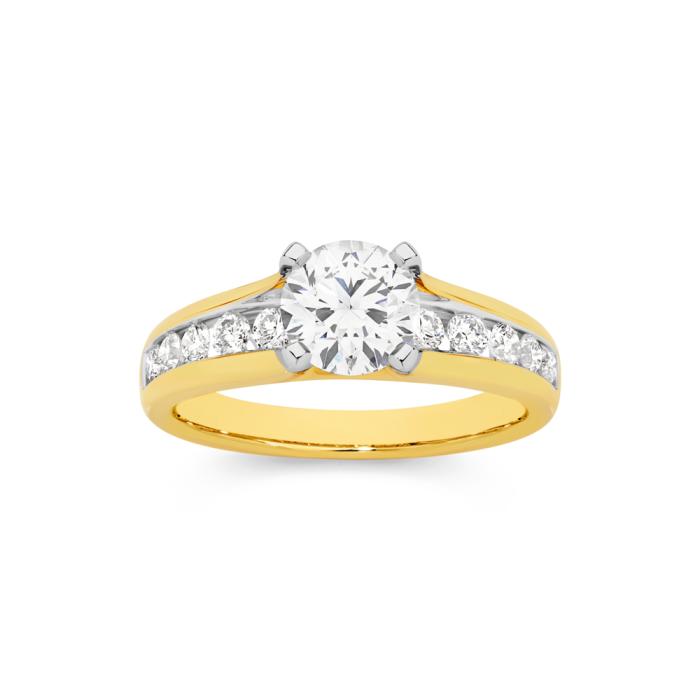 14ct Gold Lab Grown Diamond Ring Round Brilliant Cut Featuring a 1.30 Carat Solitaire Centre Stone with Channel Set Shoulders TW =1.75ct