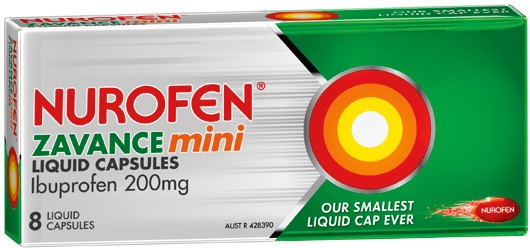 Nurofen Zavance Mini Ibuprofen 200mg Liquid Capsules 8 Pack**