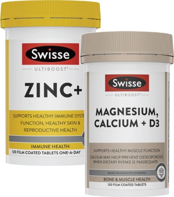 Swisse Ultiboost Zinc+ or Magnesium, Calcium + D3 Tablets 120 Pack^