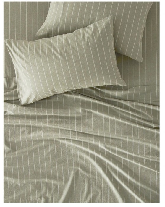 Vue Stonewashed Cotton Sheet Set - Olive Stripe#