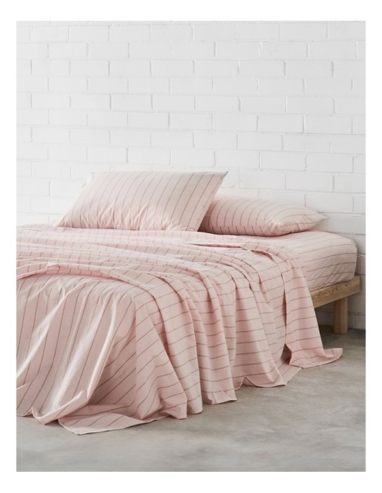 Vue Stonewashed Cotton Sheet Set - Pink Stripe#