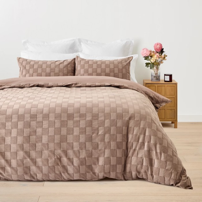 Check Stonewashed Australian Grown Cotton Quilt Cover Set - King Bed, Mocha