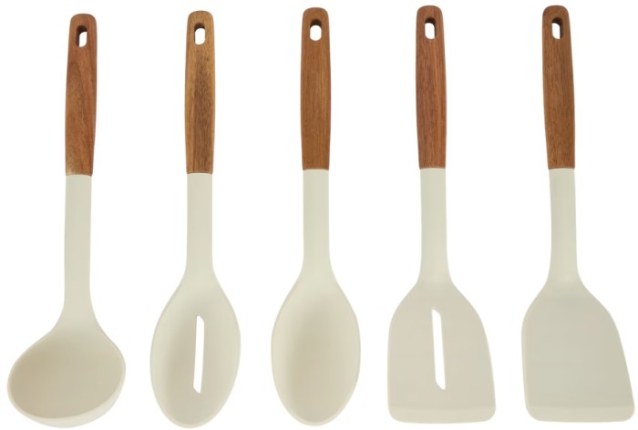 Set of 5 Silicone Utensils with Acacia Handles