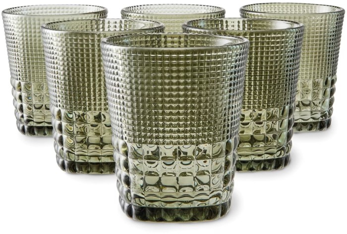 6 Green Beaded Tumbler Glasses