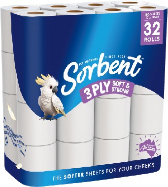 Sorbent 3 Ply Silky White Toilet Tissue 32 Pack