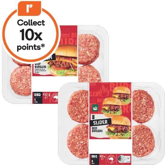 Woolworths Australian Beef Burgers Smash or Sliders 400-450g